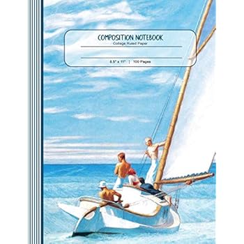 Composition Notebook / Journal - Large Writing And Journaling BookCollege ruled lined journal paper, 8.5" x 11" Size - 100 Pages.Sturdy matte softcover. Edward Hopper "Sailboat". Hoppers awesome beautiful sailing, seascape oil painting on a notebook. Perfect art lover gift for women, men, sailors, captains, students, water sports fans.Please search STYLESYNDIKAT for more creative school / college supplies and creative art graphic design notebooks for kids and adults.